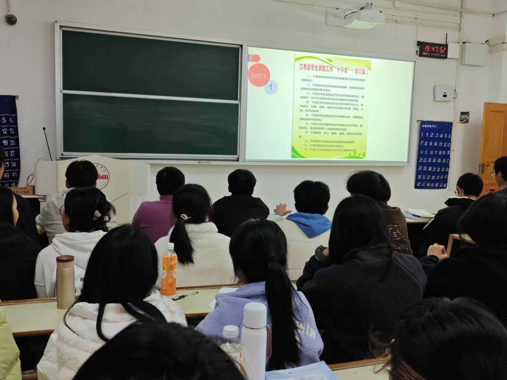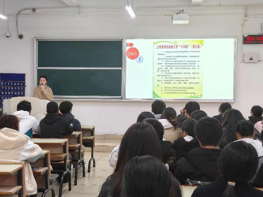 辅导员通过班会的形式组织各班开展了“十不准”学习,向同学们进一步解读了江西省学生资助工作“十不准”和相关国家资助政策,解答同学们的疑问,有效提升了资助政策的知晓率。
