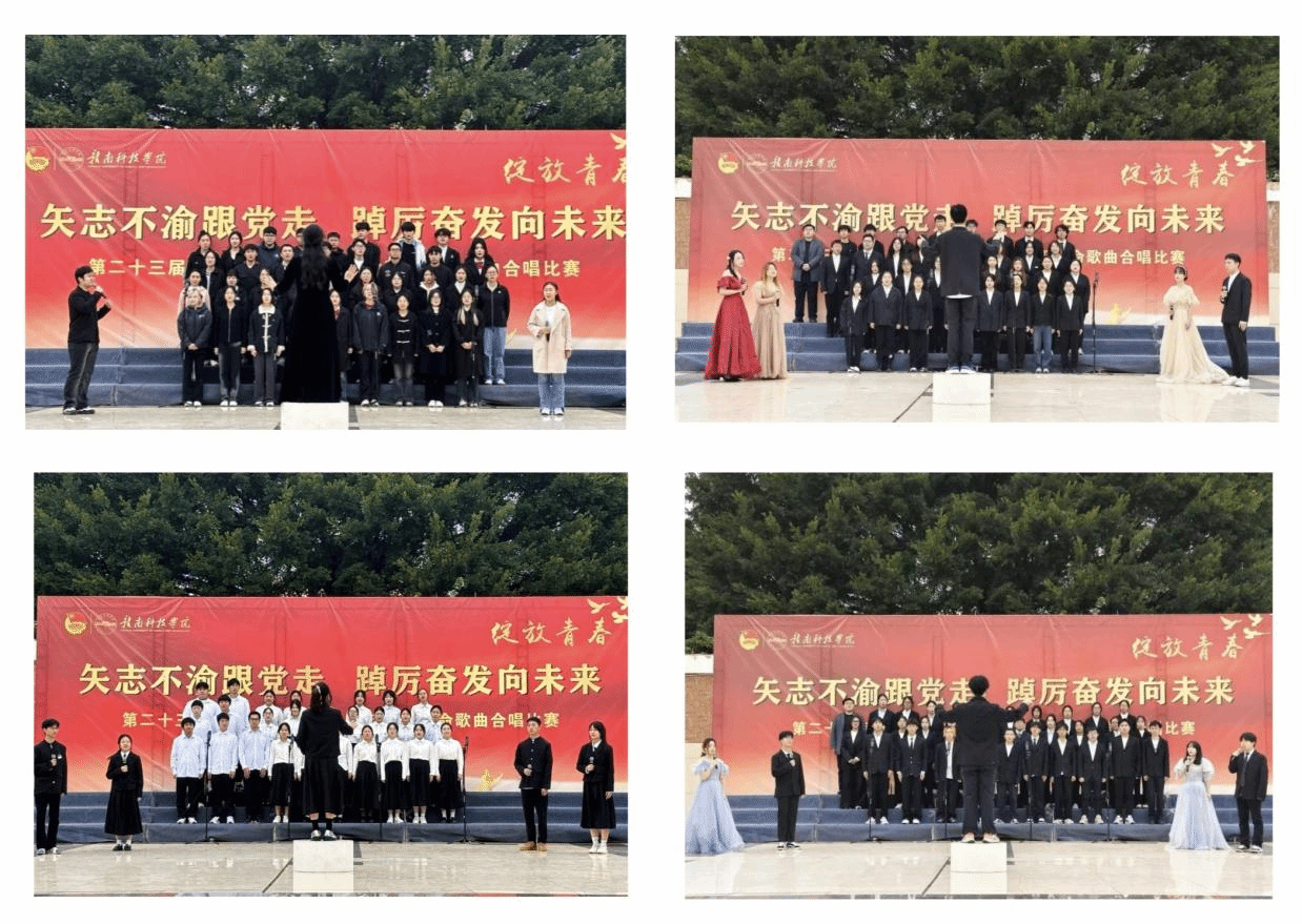 本次比赛各个班级认真对待,团结一心,展现出优秀的成果,给评委、观众带来了震撼的观感体验。经过激烈的角逐,在新生组比赛中,电商241《百年守望》荣获一等奖;工商241《我和我的祖国》、数字经济241《我爱你中国》荣获二等奖;国贸241《如愿》、电商242《紫荆花盛开》、金融241《有我》荣获三等奖。数字经济241刘梓涵获得最佳指挥,数字经济241徐静怡获得最佳领唱,会计242陈汇文获得最佳朗诵。在老生组比赛中,电商231《少年中国说》、会计231《我爱你中国》荣获一等奖;电商221《如愿》、国贸222《少年中国说》、会计221《我们都是追梦人》、电商222《我们都是追梦人》荣获二等奖;国贸231《我们的祖国》、会计233《国家》、会计232《我爱你中国》、金融232《少年中国说》、工商231《我爱你中国》、会计234《我爱你中国》荣获三等奖。老生组比赛中,汪晓锋获得最佳朗诵,韩雅静获得最佳指挥,廖延宇获得最佳领唱。