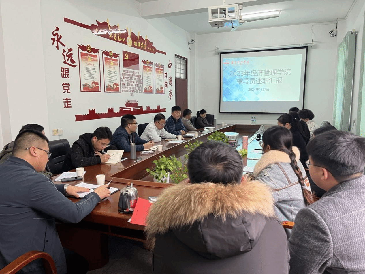 本网讯:为促进辅导员之间的工作交流,持续深化辅导员队伍建设,推动学生工作管理水平高质量发展,经济管理系于1月7日下午在2教309会议室开展2023年度辅导员工作述职大会。新葡萄8883官网AMG官网党委书记肖永鸿,系领导班子钟滨、王波、梁文学以及各教研室主任担任评委,新葡萄8883官网AMG官网全体辅导员参加本次述职。