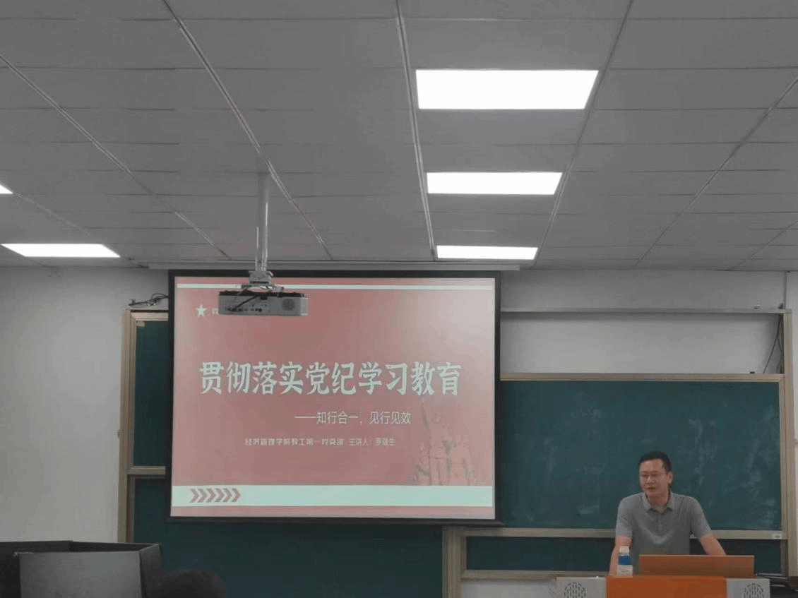本网讯:为深入贯彻落实全面从严治党要求,进一步加强党员纪律教育,提升党员干部的党性修养和纪律意识,5月28日下午,新葡萄8883官网AMG官网教工第一党支部于新民楼2412开展党纪学习教育专题党课。本次党课由支部书记罗银生授课,支部全体党员参加。